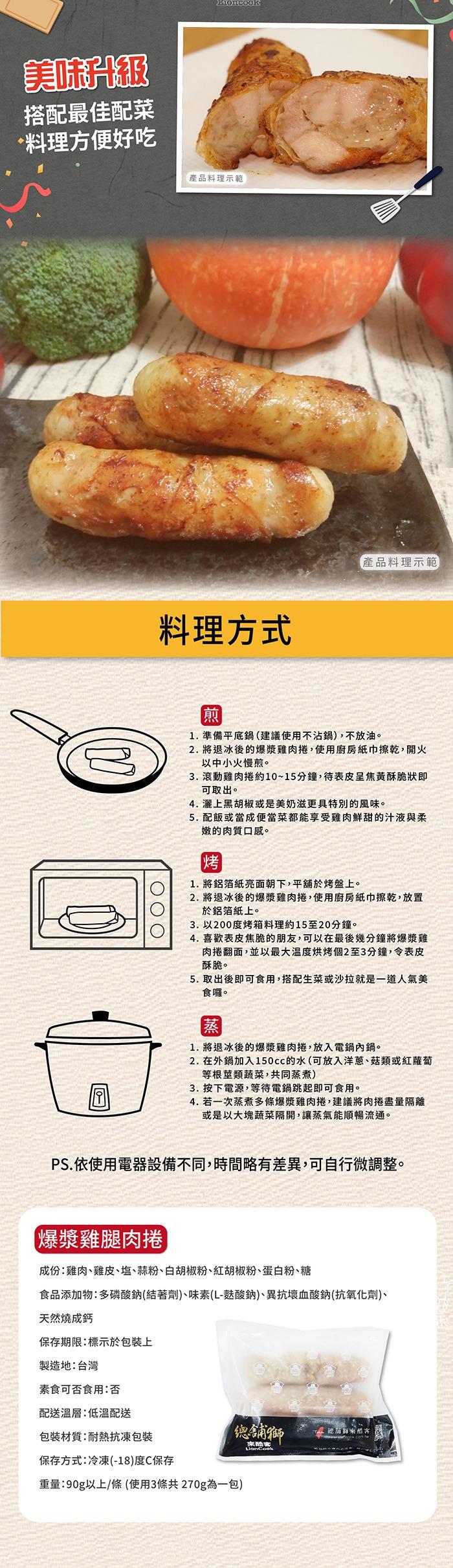 在這個快節奏的時代,方便料理成為了生活的必需品,而這款雞腿肉捲無疑是您最佳的選擇。它不僅方便快速,更能讓您在家中輕鬆享受到主廚級的美食體驗,無需繁瑣的準備,就能擁有一道讓家人和朋友都讚不絕口的佳餚。