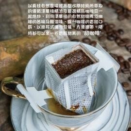 優質清華桂枝葉及嚴選精品咖啡豆焙炒 利用肉桂的自然甜味提升咖啡的香甜口感, 以掛耳式濾泡袋包裝,方便攜帶、沖泡 嚴選巴西喜拉朵水洗豆 一流杯測師親手烘焙 獨家後製技法調製肉桂風味 充氮包裝讓每一杯都新鮮 以真桂自然有機農場栽種的清華桂枝葉及嚴選精品咖啡豆一起焙炒, 利用清華桂的自然甜味提升咖啡的香甜口感, 以掛耳式濾泡包裝,方便攜帶,隨時都可以來一杯香醇甜美的〝甜咖啡〞。