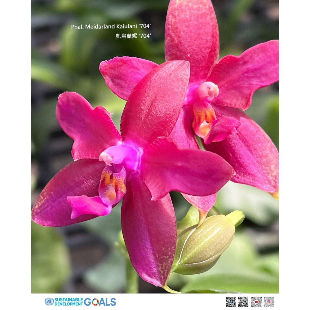 (Phal. Meidarland Kaiulani 704)是一款色澤鮮豔且花型獨特的蝴蝶蘭品種,擁有深粉紅至紫紅色調的花瓣,厚實且質感細膩,極具觀賞價值。