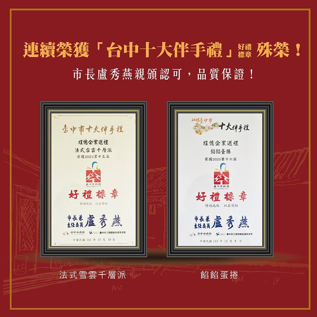 [2025年中秋節禮盒推薦] 四喜臨門-御典禮盒MA(4入法式雪雲千層派 + 4 入餡餡蛋捲 + 2 入千層蛋黃酥)