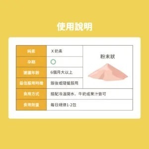 - 益兒善益生菌粉:包含有優質的益生菌,能夠支持腸道健康,進而提升整體免疫系統。