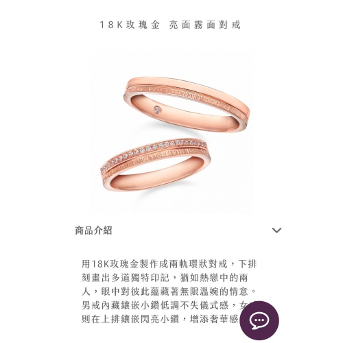 探索這款18K玫瑰金對戒,讓它成為您愛情故事的一部分,見證每一個珍貴瞬間。