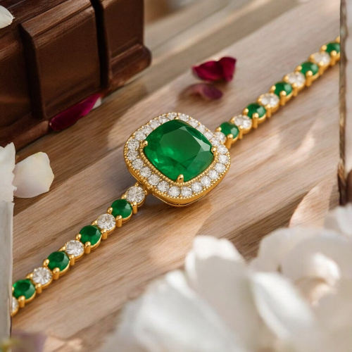 這款黃金綠寶石鑽石手鍊便是這一理念的完美體現,無論是自我佩戴還是作為珍貴的禮物送給重要的人,都是一個不容錯過的選擇。