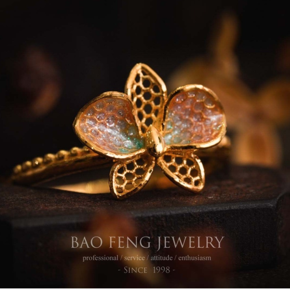 在寶豐銀樓,我們致力於將每一件珠寶飾品化為指尖的藝術品,並且深信珠寶不僅是飾品,更是展現個人風格的載體。黃金幻蝶蘭花戒指正是這一理念的完美體現。