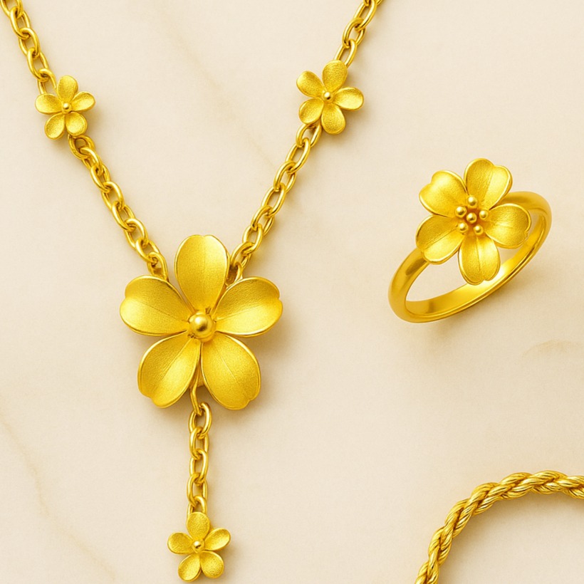 杏國銀樓的奢華黃金花紋套組