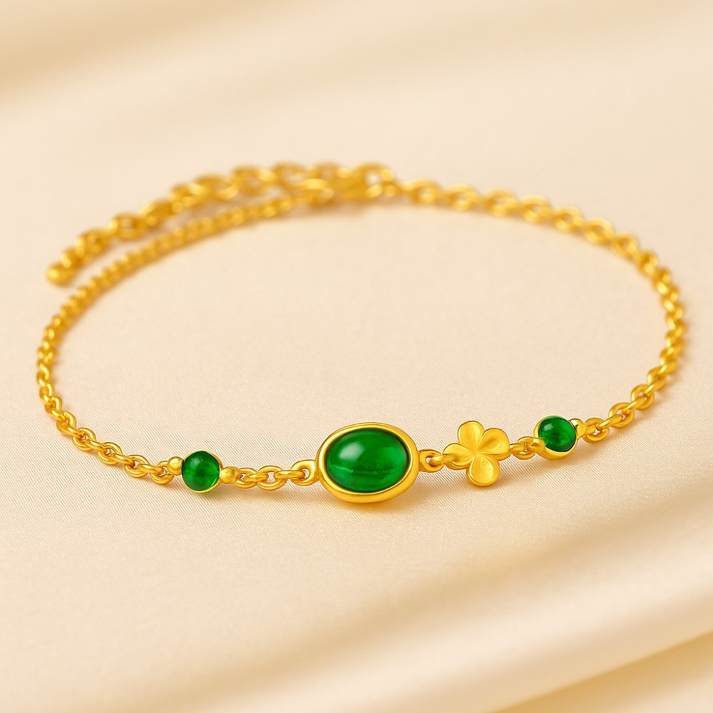 在信昌銀樓的璀璨珠寶世界中,黃金綠玉手鏈以其卓越的工藝和獨特的設計,成為時尚潮流的象徵。這款手鏈巧妙地融合了象徵幸運的四葉草與天然寶石,展現出精緻且優雅的風格。無論是作為結婚對戒的理想伴侶,還是生日禮物的完美選擇,黃金綠玉手鏈都能為您帶來幸福與好運。