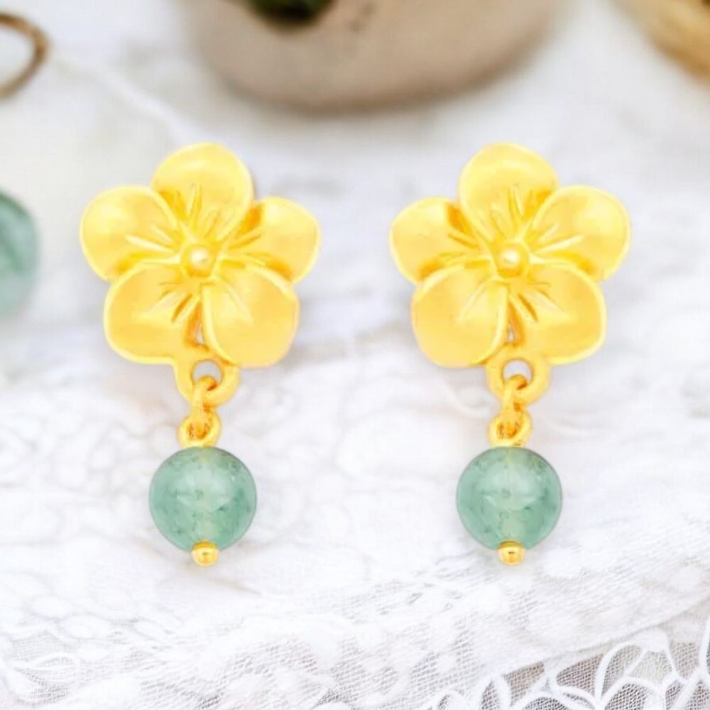 無論是搭配日常服飾,還是在特別場合中增添光彩,黃金花朵翡翠耳環都是您不可或缺的選擇。這款耳環不僅適合作為結婚對戒的完美搭配,還是送給摯愛的最佳生日禮物。