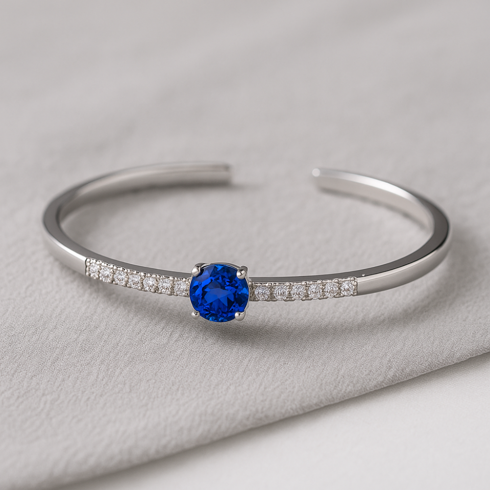 這款藍寶石手環的深邃藍色光彩,搭配細緻工藝打造出的鑽石排列,閃耀迷人光芒,讓佩戴者在每一個瞬間都自信滿滿。此外,手環的開口式結構方便佩戴與調整,適合各種手腕尺寸,無論搭配正式服飾或休閒風格,都能展現獨特魅力。