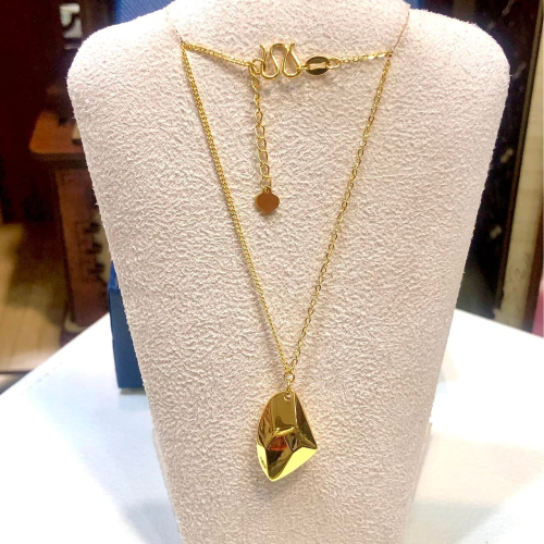 這款項鍊不僅採用高質感的黃金材質,細膩的鏈條和別緻的吊墜設計,更是經過精心打磨與拋光,展現出耀眼的光澤與純淨色澤。吊墜的不規則幾何造型完美融合了藝術與時尚元素,突顯佩戴者的獨特品味,無論是正式的場合還是休閒的時光,它都能提升整體造型的質感,讓您在每一刻都散發自信與魅力。