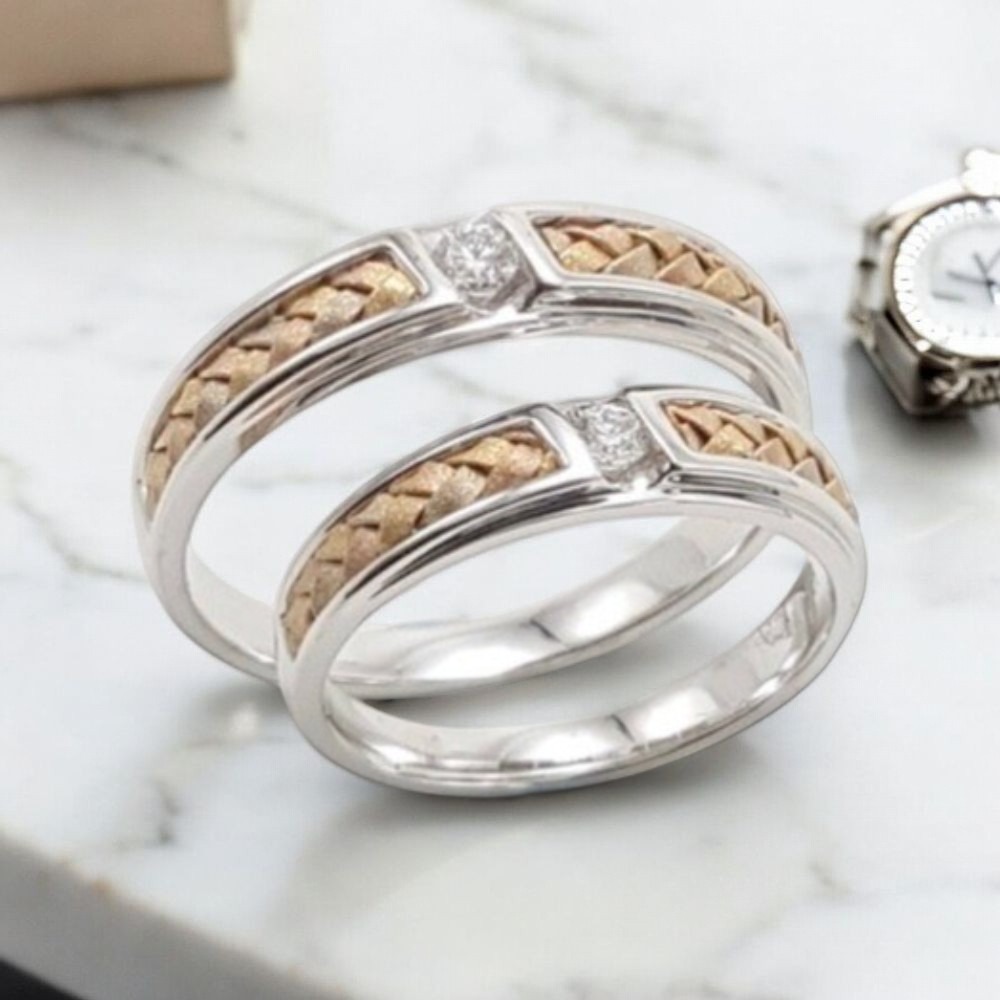 獨特的編織設計搭配閃耀的小顆鑽石,讓整體造型充滿層次感與時尚感,無論是訂婚、結婚還是紀念日,這對戒指都能夠完美傳達情侶之間的深厚情感。