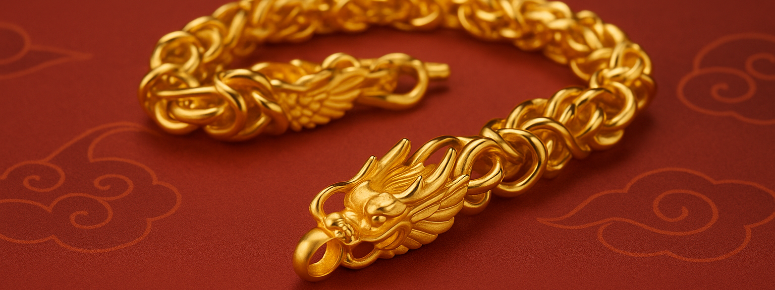 黃金龍頭手鍊 - 典雅華麗的力量象徵,展現個人品味與吉祥如意