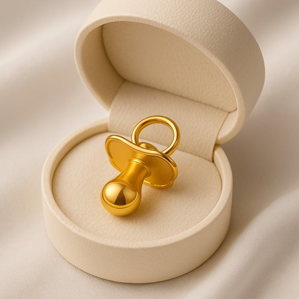 此外,黃金材質不僅具有保值的特性,更兼具裝飾與投資的雙重價值,讓追求質感與意義的消費者能夠選擇這款黃金嬰兒安撫奶嘴吊飾,增添珍貴的親子回憶。