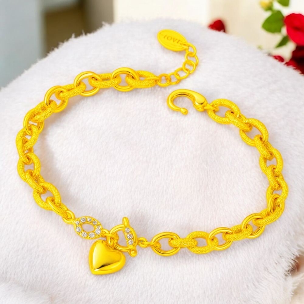 這款黃金愛心手鍊完美適合各種服裝風格,無論是休閒、正式或約會場合,都能展現出女性的優雅氣質。其精緻的工藝與獨特的設計,使其成為時尚珠寶收藏中的亮點,無疑是對美好生活的追求與展現。