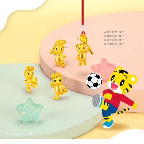 巧虎黃金墜子系列是專為巧虎粉絲及飾品愛好者打造的獨特產品,靈感源自可愛活潑的巧虎角色。這一系列包含四款精緻的黃金墜飾,分別為: