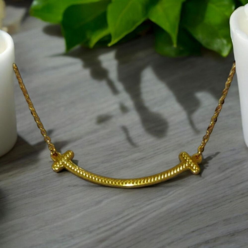 這條黃金項鍊以簡約設計和優雅風格的完美融合,展現出獨特的微笑曲線,並象徵著幸福與正能量。