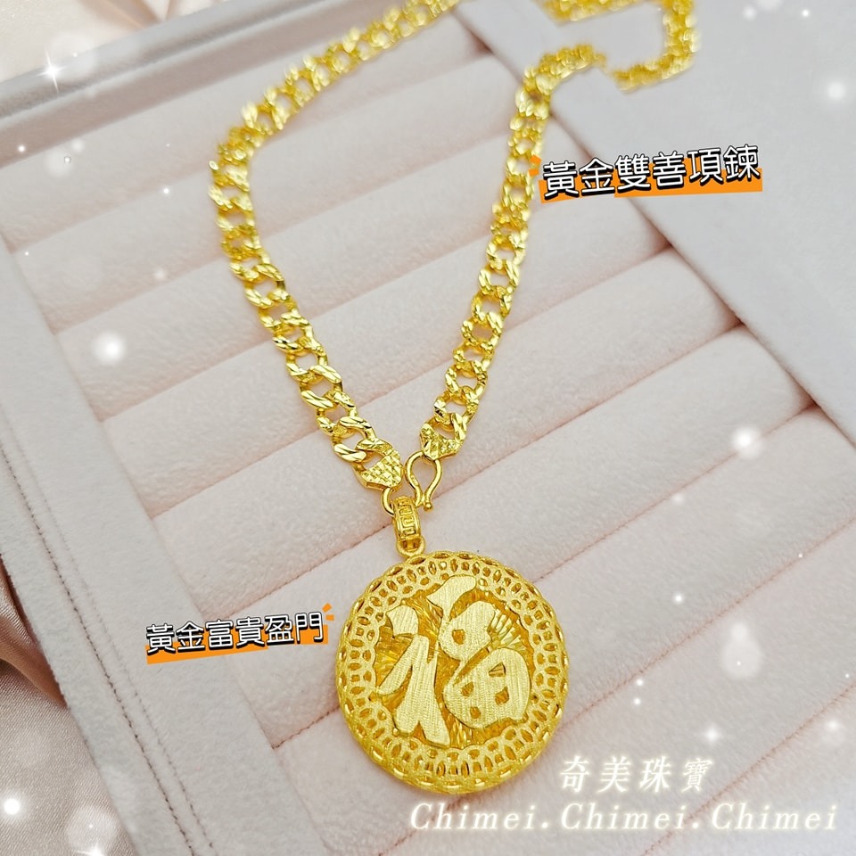 這款黃金富貴盈門雙善項鍊以其純黃金材質,展現出耀眼奪目的光澤與質感,讓每位佩戴者都能感受到富貴與吉祥的象徵。