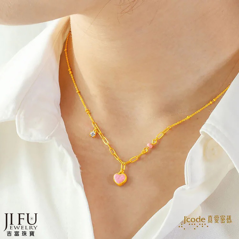 心跳加速,愛意閃耀頸間!J'code 真愛密碼 2025 七夕全新黃金項鍊系列,以9999純金精製,四款設計滿載甜蜜: