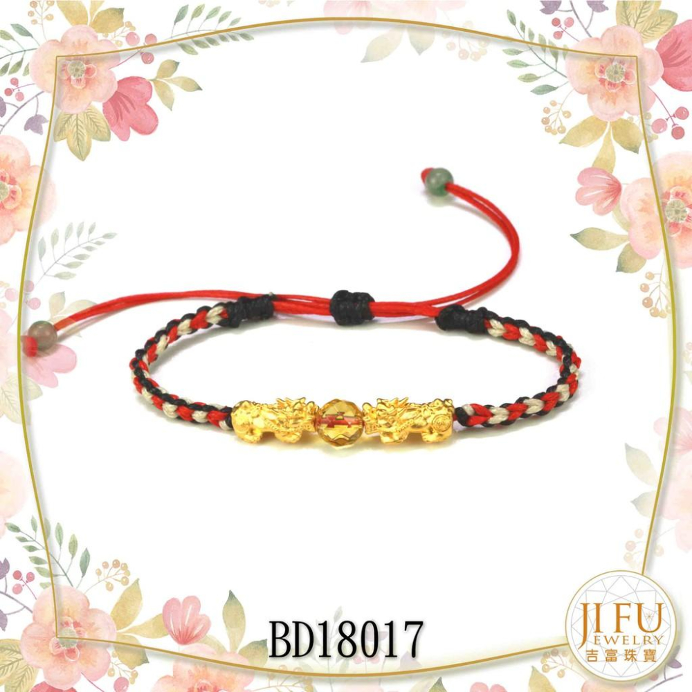 吉富珠寶銀樓-黃金編織蠟繩手鍊【BD18015招財貔貅手鍊】→※下標前請先詢問當日優惠價格※