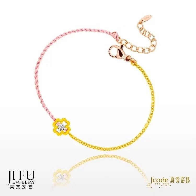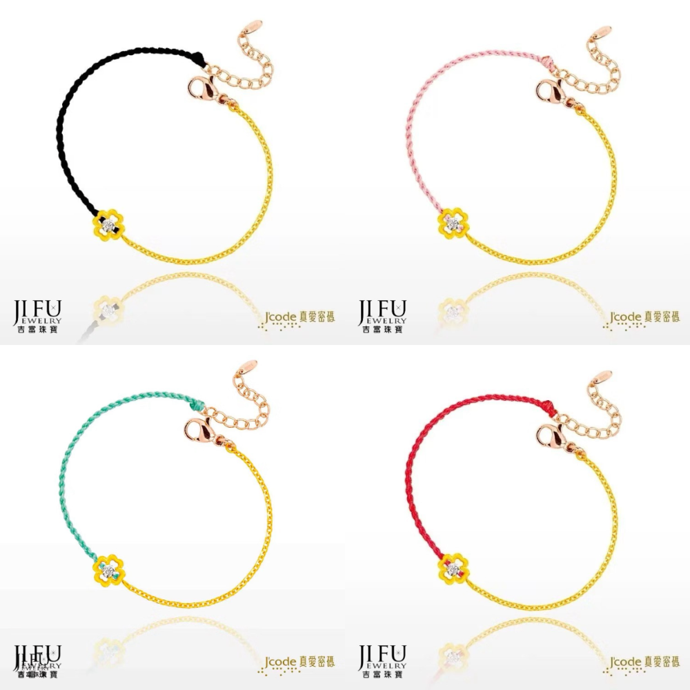 吉富珠寶銀樓-真愛密碼新款黃金手鍊【小幸運 幸運草-粉/紅/藍綠/黑編織手鍊】→※下標前請先詢問當日優惠價格※