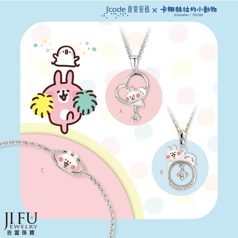 真愛密碼新款【卡娜赫拉的小動物 哈囉P助和粉紅兔兔 - 純銀墜子 + 白鋼項鍊】