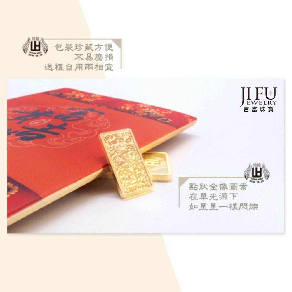 吉富珠寶銀樓-純黃金9999幻彩經典富貴吉祥煌隆金塊【一錢版】→※下標前請先詢問當日價格※