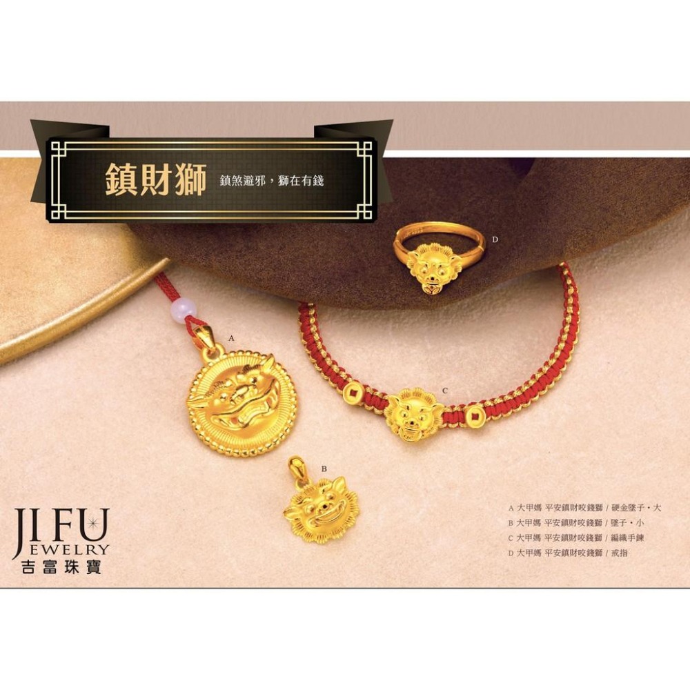 吉富珠寶銀樓-真愛密碼新款【大甲媽 平安鎮財咬錢獅-男黃金墜子】→※下標前請先詢問當日價格※