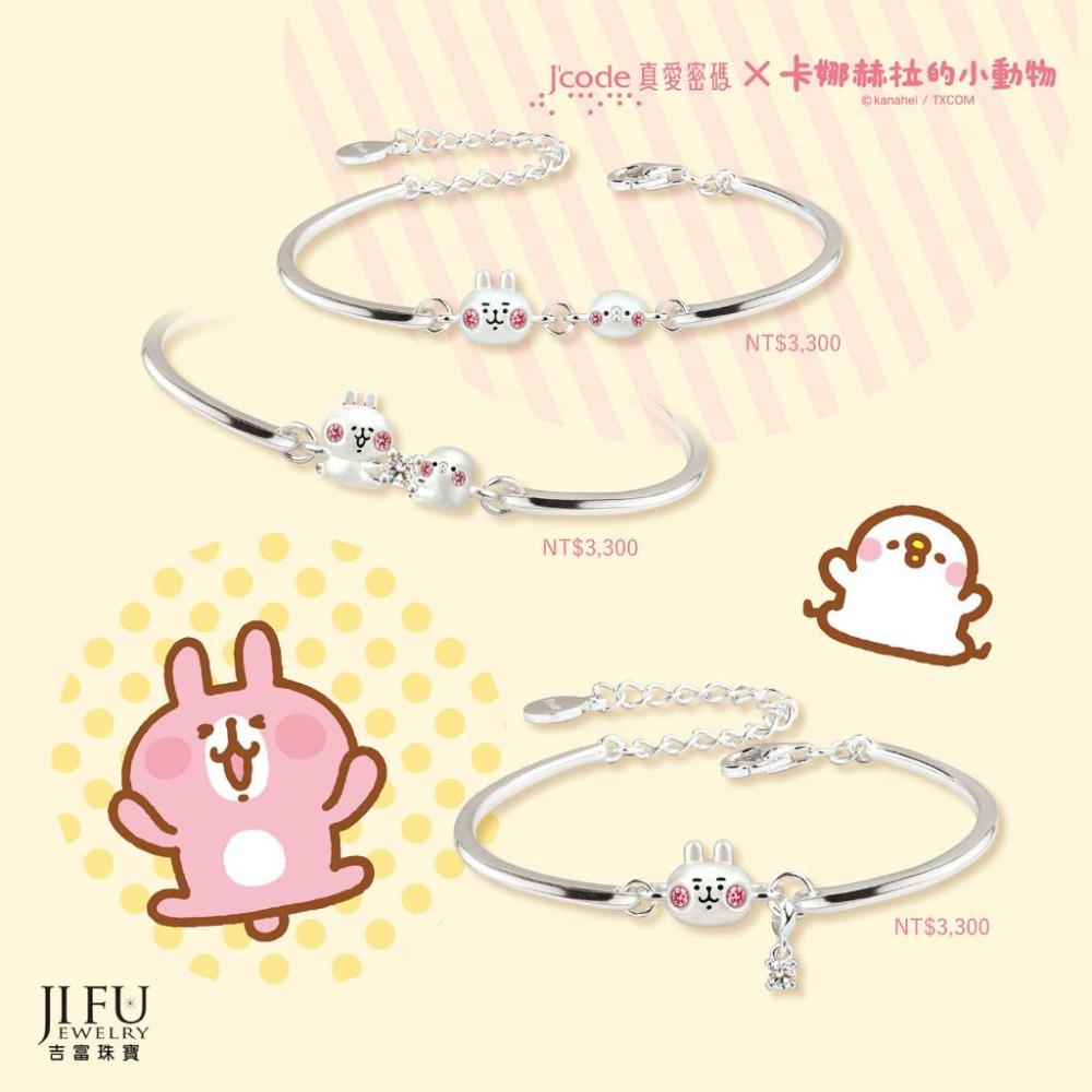 吉富珠寶銀樓-真愛密碼新款【卡娜赫拉的小動物 晶亮P助和粉紅兔兔 - 黃金、純銀手環】→※下標前請先詢問當日價格※