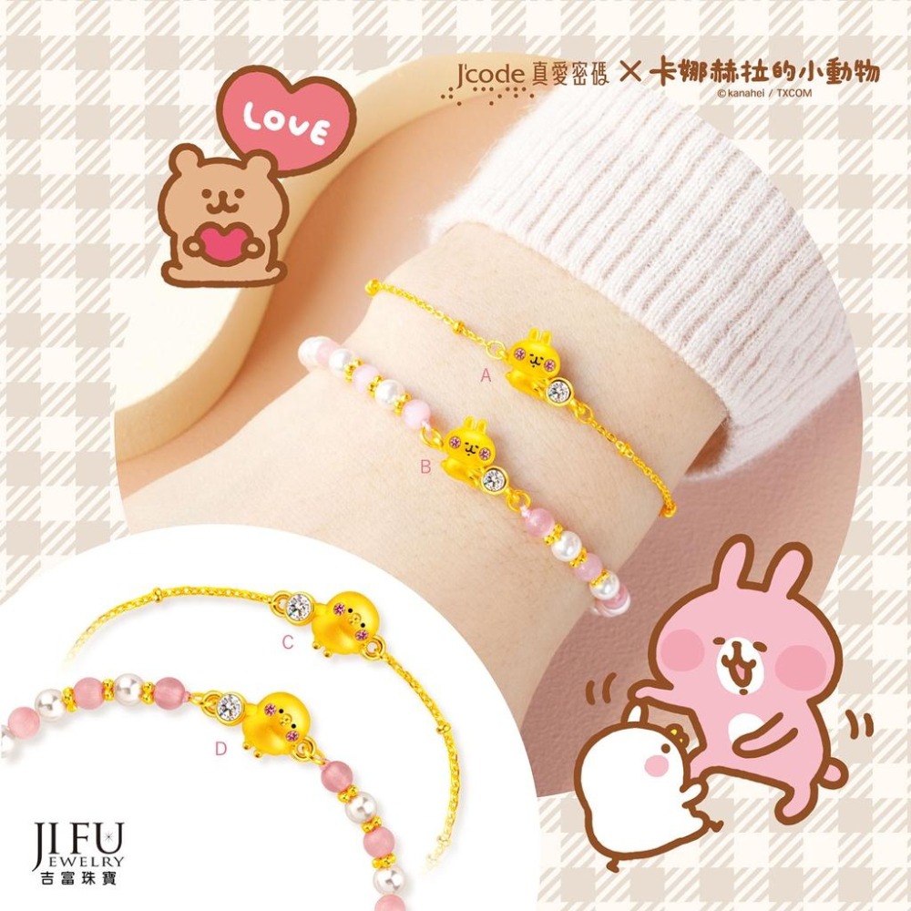 吉富珠寶銀樓-真愛密碼新款【卡娜赫拉的小動物 晶亮粉紅兔兔 - 戒指、手鍊、寶石珍珠手鍊】→※下標前請先詢問當日優惠價格※
