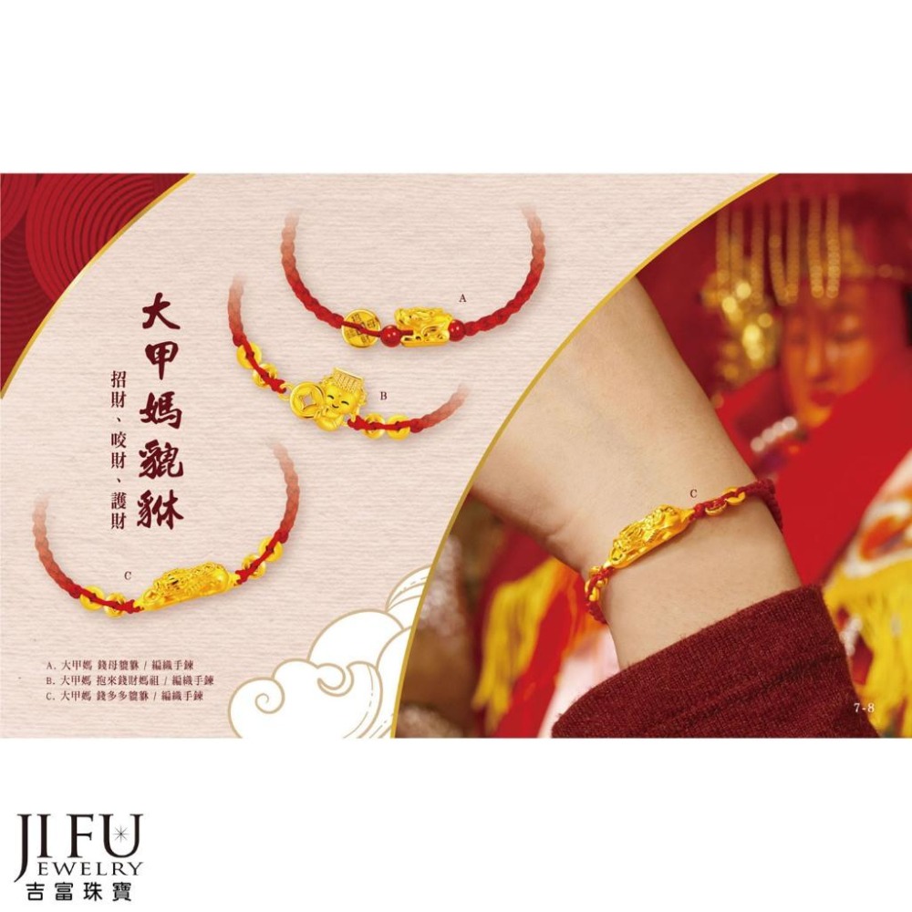吉富珠寶銀樓-真愛密碼新款【大甲媽-抱來財寶媽祖、抱來平安媽祖、錢母貔貅、錢多多貔貅 - 編織金手鍊】→※下標前請先詢問當日價格