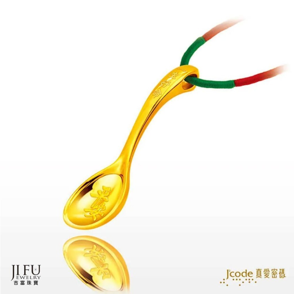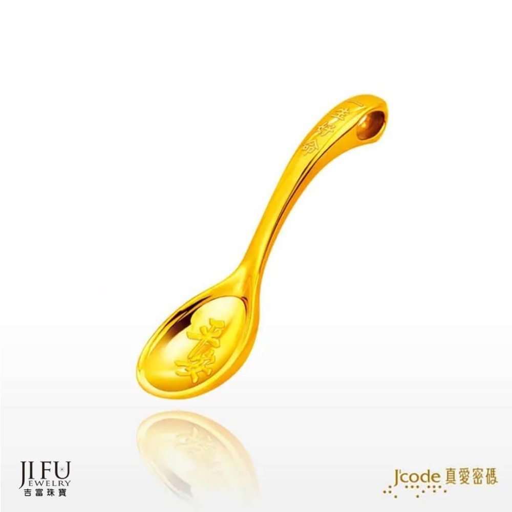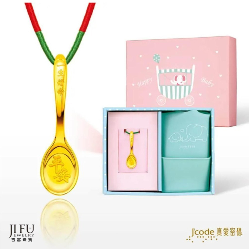 吉富珠寶銀樓-真愛密碼新款【一生好命金湯匙 - 金鋼配墜子 &; 擺件 圍兜兜禮盒】→※下標前請先詢問當日價格※