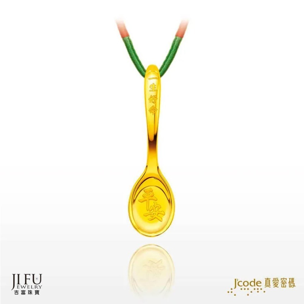 此金鋼配湯匙,湯匙寫著平安的凹弧面為9999純金金片,湯匙體為白鋼鍍金黃色