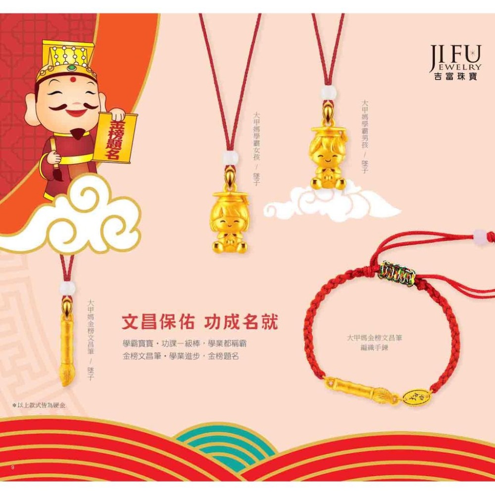吉富珠寶銀樓-真愛密碼新款【大甲媽 金榜文昌筆 - 黃金墜子、編織金手鍊】→※下標前請先詢問當日優惠價格※