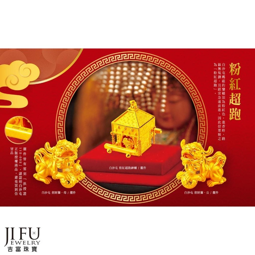 吉富珠寶銀樓-真愛密碼新款【白沙屯粉紅超跑神轎 - 黃金擺件】→※下標前請先詢問當日優惠價格※