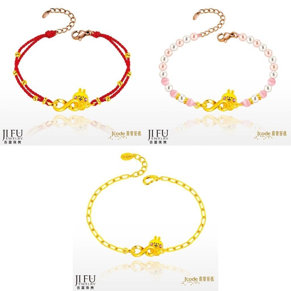 吉富珠寶銀樓-真愛密碼新款【卡娜赫拉的小動物 無限粉紅兔兔 - 編織金手鍊、寶石珍珠手鍊、黃金手鍊】
