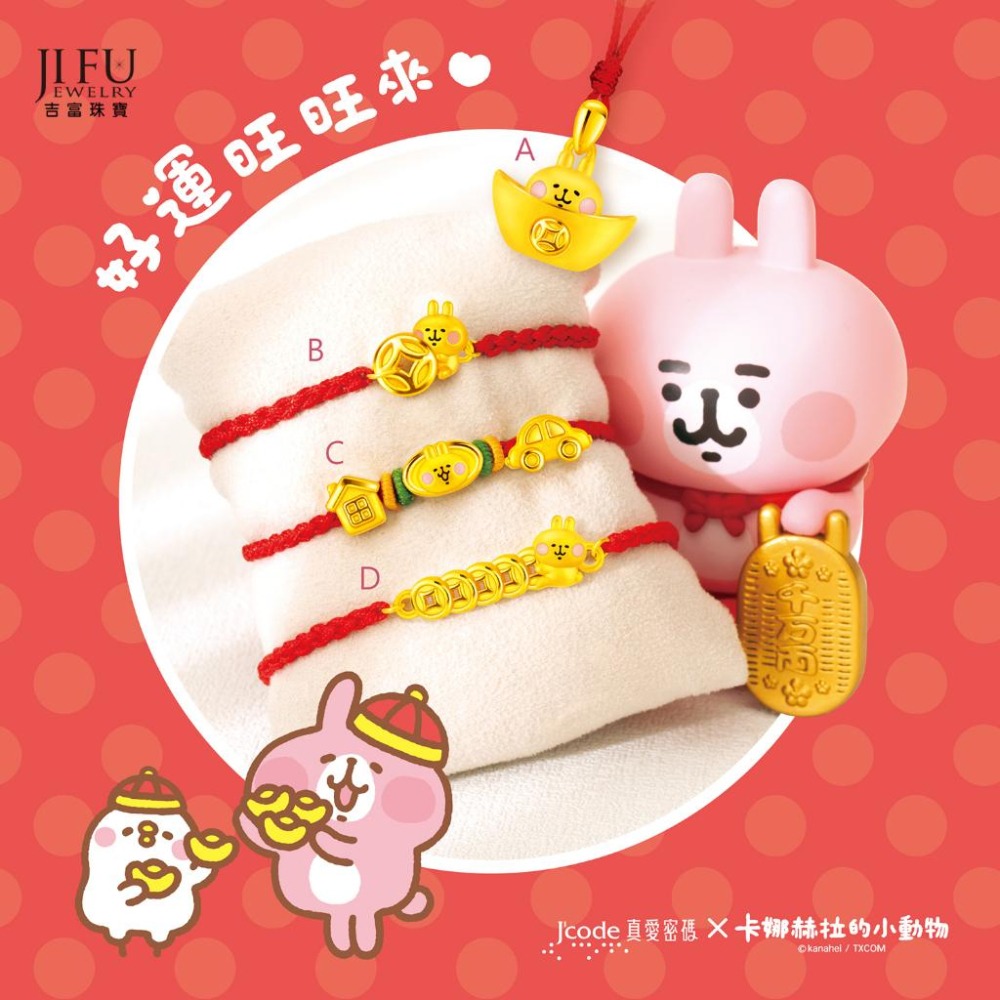 吉富珠寶銀樓-真愛密碼新款【卡娜赫拉的小動物 抱來錢錢粉紅兔兔 - 編織金手鍊】→※下標前請先詢問當日價格※