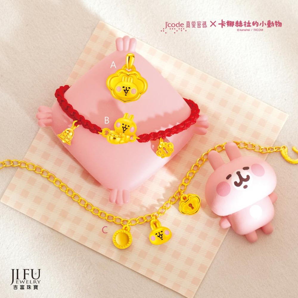 吉富珠寶銀樓-真愛密碼新款【卡娜赫拉的小動物 平安鐘鼓鎖粉紅兔兔 - 黃金手鍊】→※下標前請先詢問當日價格※