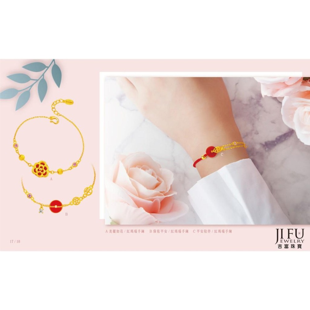 吉富珠寶銀樓-真愛密碼新款【美麗如花 - 紅瑪瑙金手鍊】→※下標前請先詢問當日價格※