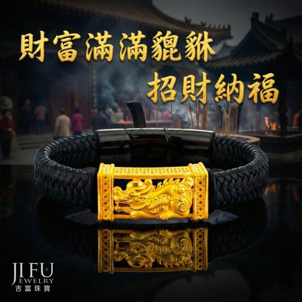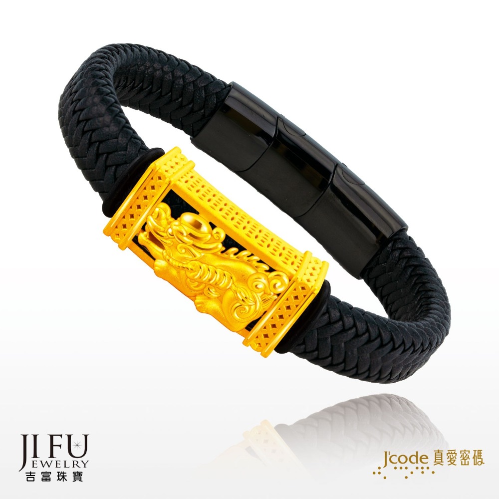 吉富珠寶銀樓-真愛密碼新款【白沙屯-財富滿滿豼貅 - 皮質編織金手鍊】→※下標前請先詢問當日價格