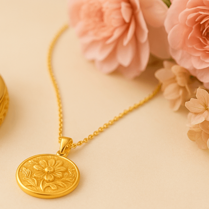 每一件飾品都經過精心設計,這款項鍊以精緻的花朵浮雕設計展現出自然的優雅,並用高品質的黃金材質製作,為每位女性帶來細膩的光澤,讓她們的柔美氣質恰到好處地展現出來。