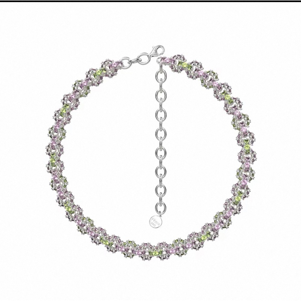 這款花朵寶石項鍊巧妙地融合了粉色與綠色寶石,展現出自然浪漫的優雅魅力,仿佛是春日花園中的一抹靚麗色彩,讓每位佩戴者都能感受到大自然的美好。