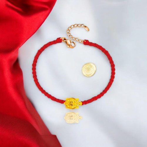 每一條手鍊都由我們的工匠精心打造,使用純金製作的招財龜吊墜,象徵著財富與幸運,並搭配鮮豔的紅繩編織,紅色在中華文化中更是吉祥與喜氣的代表,意在為佩戴者帶來正能量。