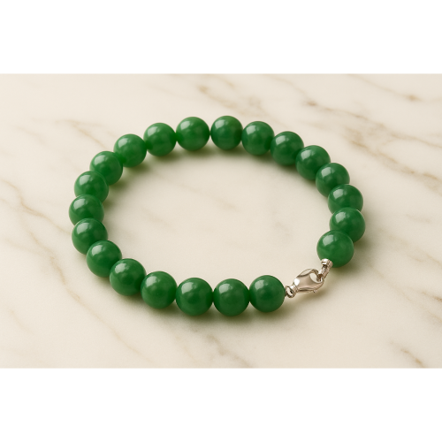 每顆圓潤的翡翠玉珠串聯而成,搭配高品質的銀色扣環設計,讓您在日常生活中也能輕鬆佩戴。