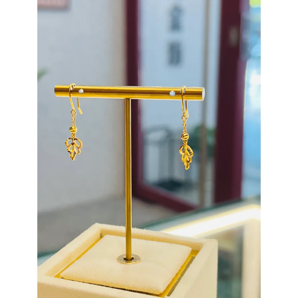這款黃金葉片垂吊耳環以精緻的葉片造型展現自然美感,搭配高純度的純金材質,無論在日常穿搭或正式場合均能為您增添典雅氣質與時尚感。