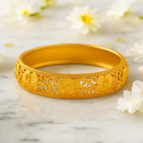 這款黃金花卉手鐲不僅是一件珠寶,更是藝術品,無論搭配傳統服飾或現代時尚裝扮,都能完美呼應,展現佩戴者獨特的品味與氣質,讓每位佩戴者都能在生活的每一刻中,散發出無與倫比的自信與優雅。