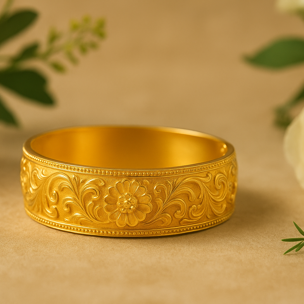 黃金雕花手鐲 - 精緻花卉設計,奢華純金材質,完美提升個人魅力與氣質