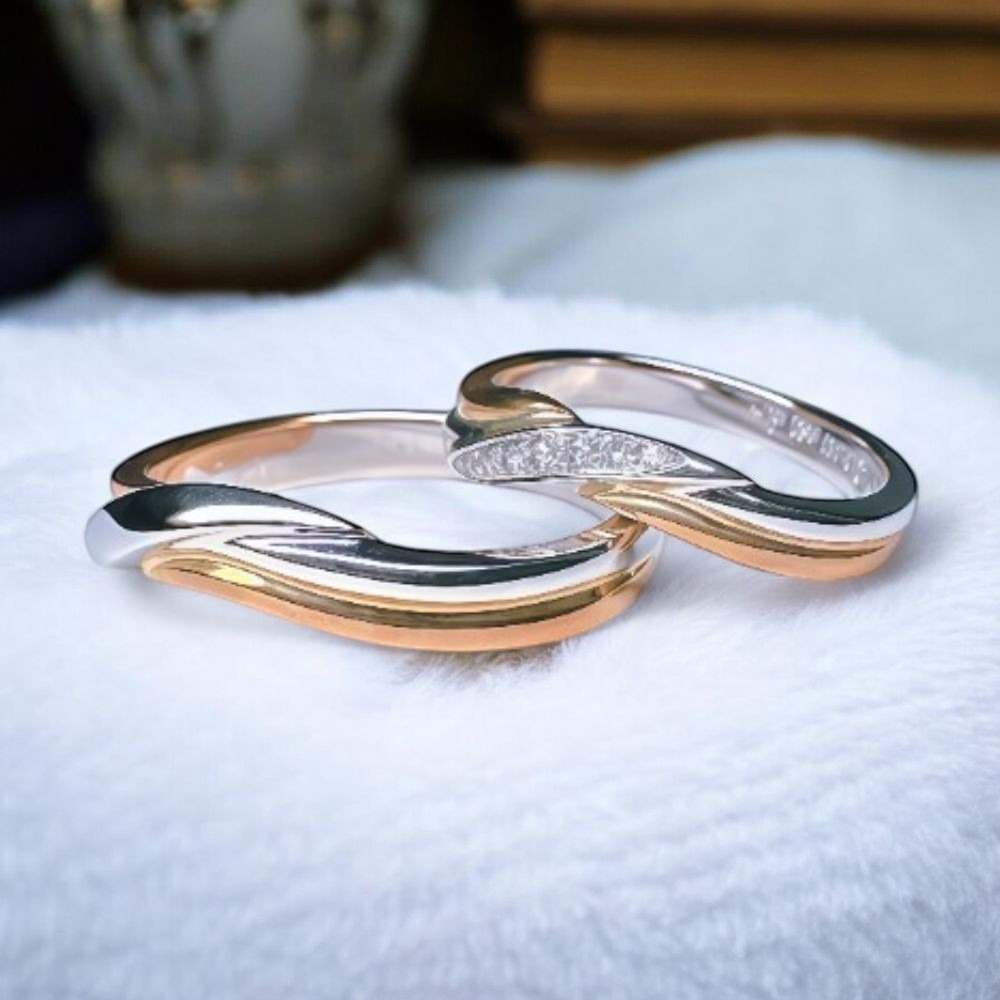 每一顆閃耀的鑽石都如同愛情的光芒,為這對戒增添了高貴的質感,讓每一次佩戴都散發著無與倫比的魅力。這款雙色金鑽石對戒採用高品質的材質,經過精細的打磨處理,表面呈現柔和的光澤,兼具耐用與美觀,設計靈感源自自然流動的曲線,象徵著愛情的連結與永恆。