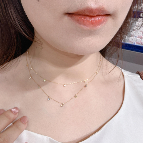 天然鑽的璀璨光芒與金色鍊條的華麗質感交相輝映,為您的頸間增添一抹永恆的經典之美。選擇這款日本輕珠寶雙層水鑽項鍊,讓每一個細節都展現出您的品味與格調。