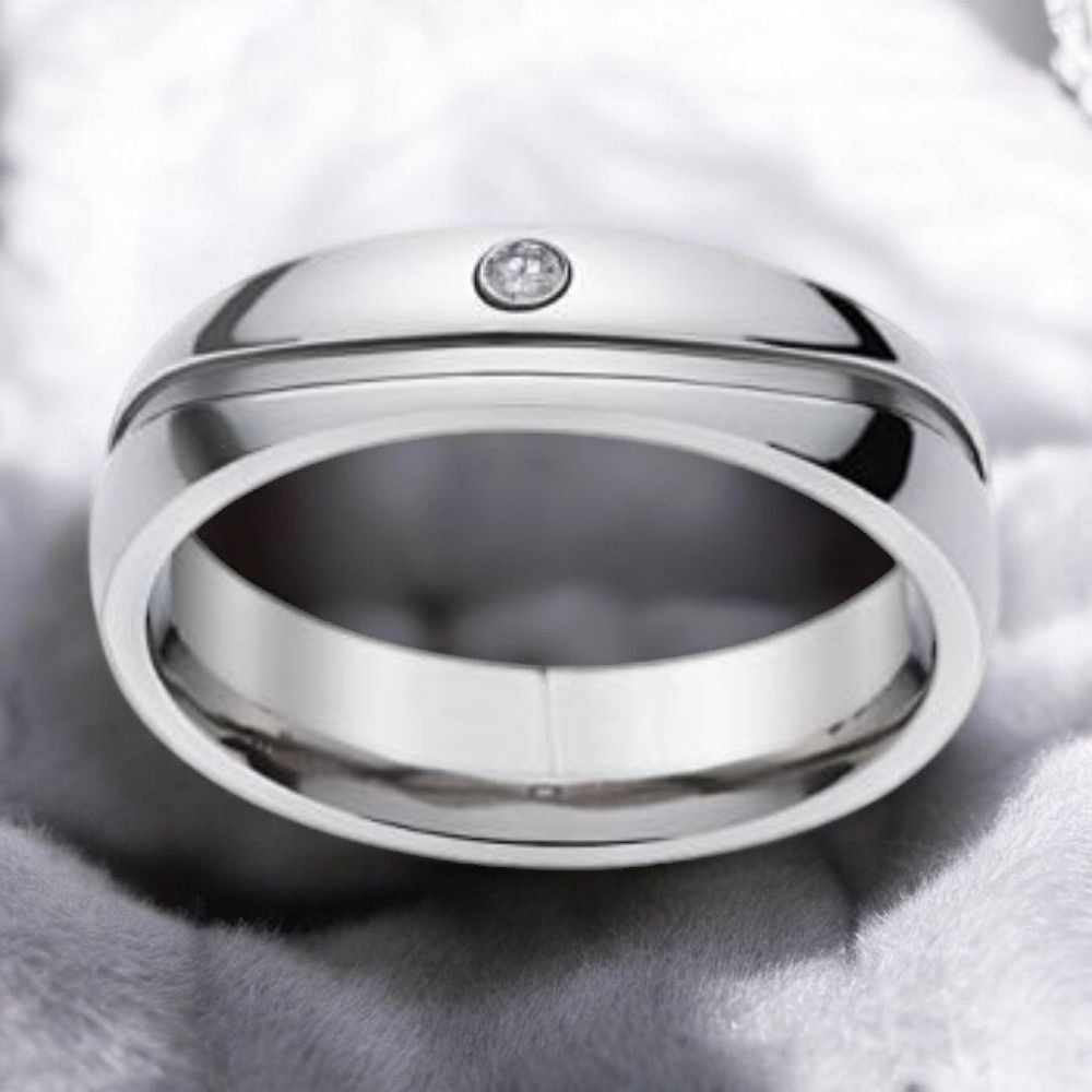這款簡約鑽石鈦鋼戒指是時尚與耐磨的完美結合,專為追求低調奢華的現代男女設計,無論是日常佩戴還是重要場合,它都能完美襯托您的品味。