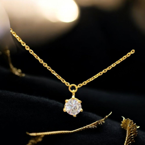 - 項鍊採用純金鏈條,搭配璀璨水晶墜飾,展現迷人的光彩。
