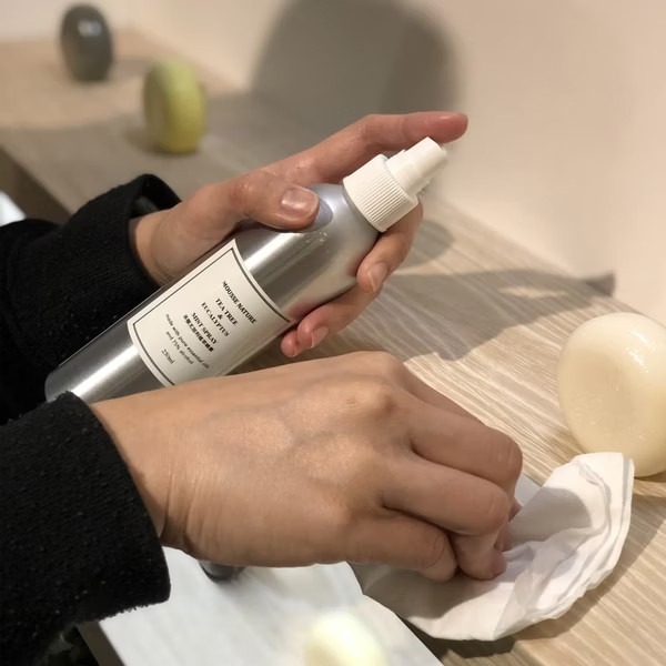 沐時光依照歐洲傳統調香工法,以蒸餾水、75%酒精、柑橘調精油組成,